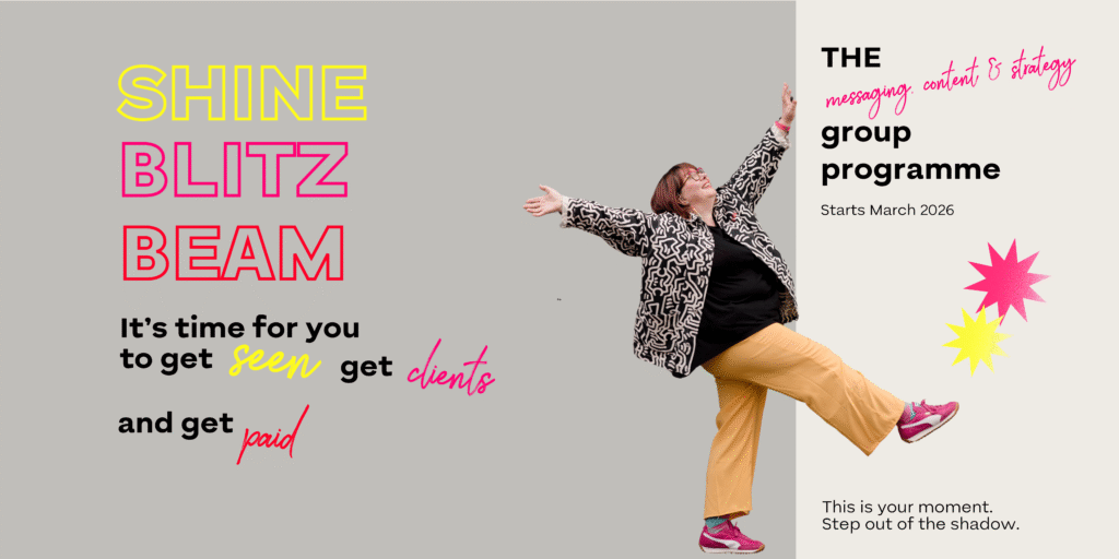 On 8 January, join me for a 2.5 hour workshop to do just that. We’ll take a wide look at the year ahead and make sure your messaging – and marketing plans – help you get to your goals in a way that feels doable, and yes, even enjoyable.